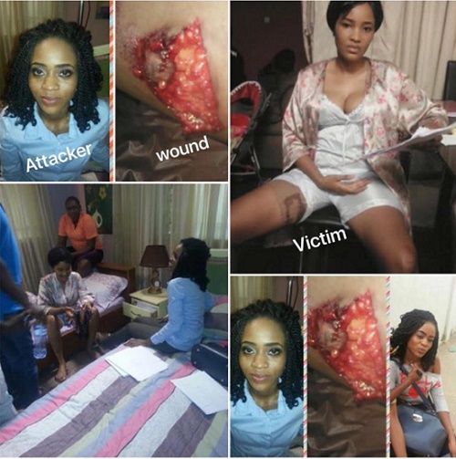 The management took me to another hotel, then hospital to make sure I was properly treated. Presently shooting in Iyana paja. Name of program: Behind the smile. Happened 11:30pm yesterday. That’s Friday. Her name is Chrystabel Goddy. Still in the hospital with stitches and my wound still bleeding."