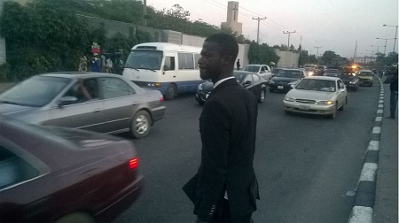 The bus I joined was halted by the red demand of the traffic light on the independence bridge, just close to the Maryland mall. Lo and behold, I saw him- suited up, holding a black leather bag as he moved in a gait of resignation to fate from the front of one bus to the other. He was turned down by some while others marveled at the pride with with he was doing his work. I wasn't sure, but then, he walked towards my vehicle and my doubt was cleared. Abdullahi Olatoye, the windscreen cleaner!