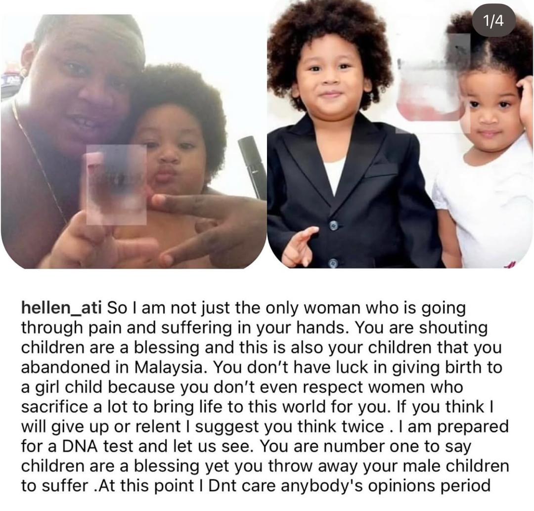 He came out with this clarification after Hellen Mutinu, the Kenyan woman claiming to be his baby mama, alleged via her Instagram page that he has two children he abandoned in Malaysia.