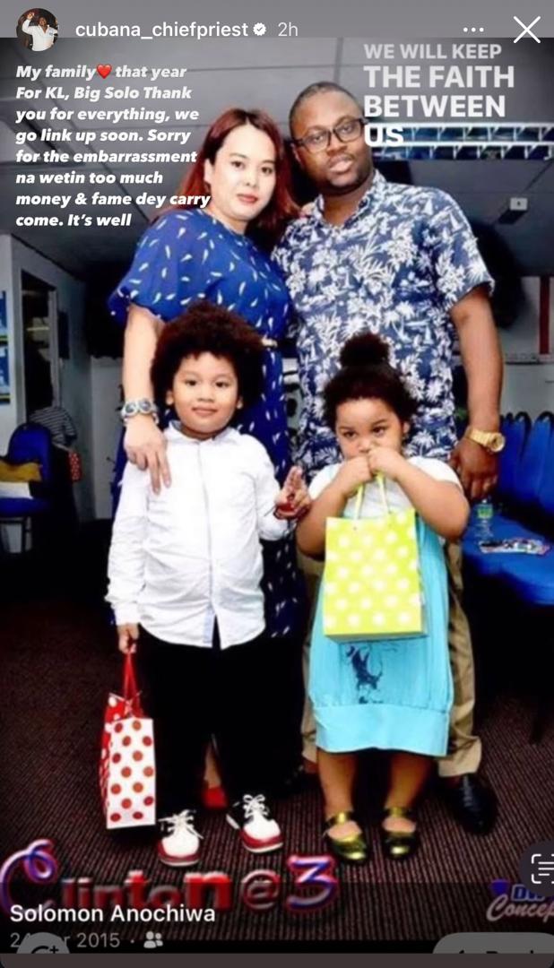 In a post shared on his Instastories on Sunday afternoon January 19, Chiefpriest indicated that the children being flaunted as his are his friend's kids.