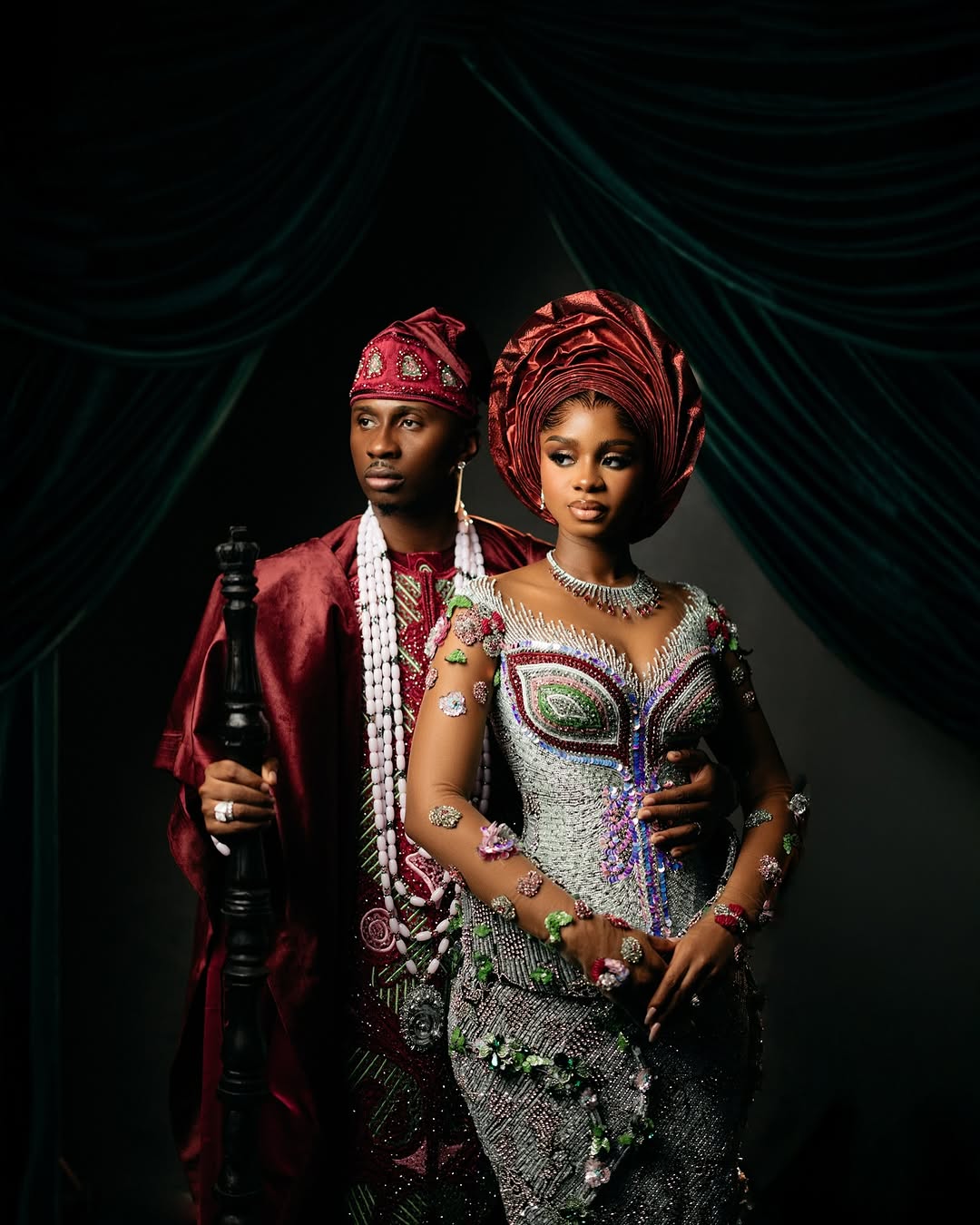 Nigerian actress, Iyabo Ojo's daughter, Priscilla Ojo and Tanzanian singer Juma Jux changed into a second outfit for their wedding reception.
