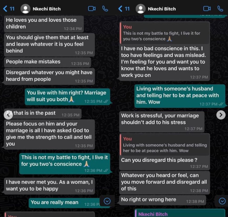 From the chat, Maryanne insinuated that Maria caused her not to be in "talking terms with her husband". She also alleged that the reality show star was living with her husband.