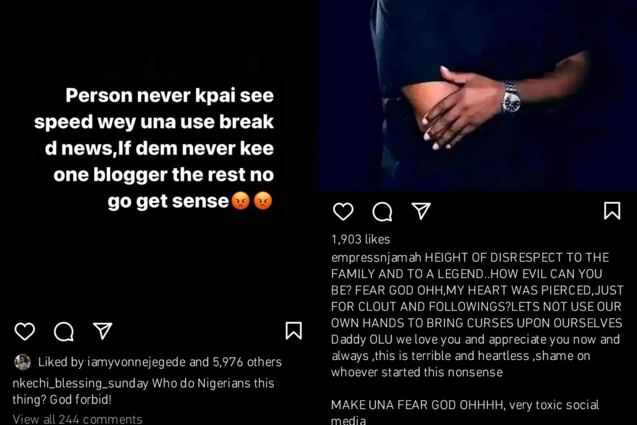 “HEIGHT OF DISRESPECT TO THE FAMILY AND TO A LEGEND..HOW EVIL CAN YOU BE? FEAR GOD OHH,MY HEART WAS PIERCED,JUST FOR CLOUT AND FOLLOWINGS?LETS NOT USE OUR OWN HANDS TO BRING CURSES UPON OURSELVES