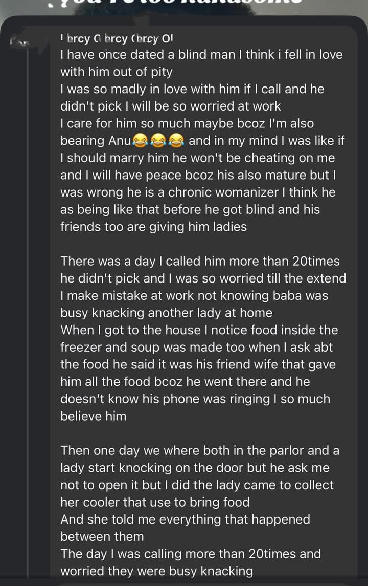 She narrated her experience with dating the visually impaired man who turned out to be a chronic womanizer.