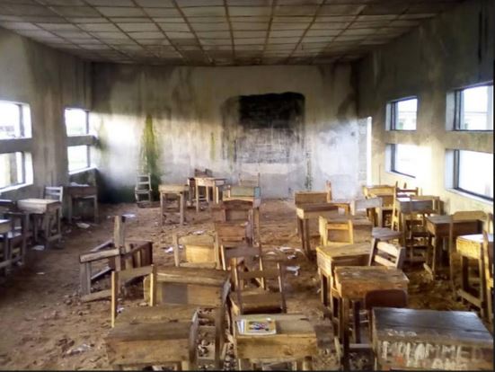 3. Uncompleted Chemistry and Physics laboratories were converted to classrooms that are currently occupied by JSS 2A and SSS 1C students. This chemistry lab-turned classroom is unfit for learning, as the floor has not yet been cemented.