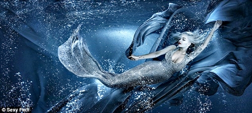The aquatic photo-shoot took place to promote new restaurant "Sexy Fish", which opens in London's Berkeley Square in mid-October. It was inspired by the restaurant’s private dining room "The Coral Reef Room", which houses the largest live coral reef tank in the world.