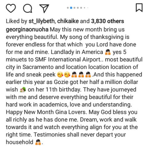 Single mother, Georgina Onuoha who relocated to the United States of America after getting married to a doctor has finally bought a home over there.