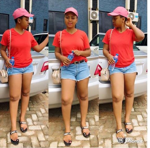 Regina Daniels who is reportedly doing well as a student of the Igbinedion University, Okada in Edo State looked gorgeous in bump shorts.
