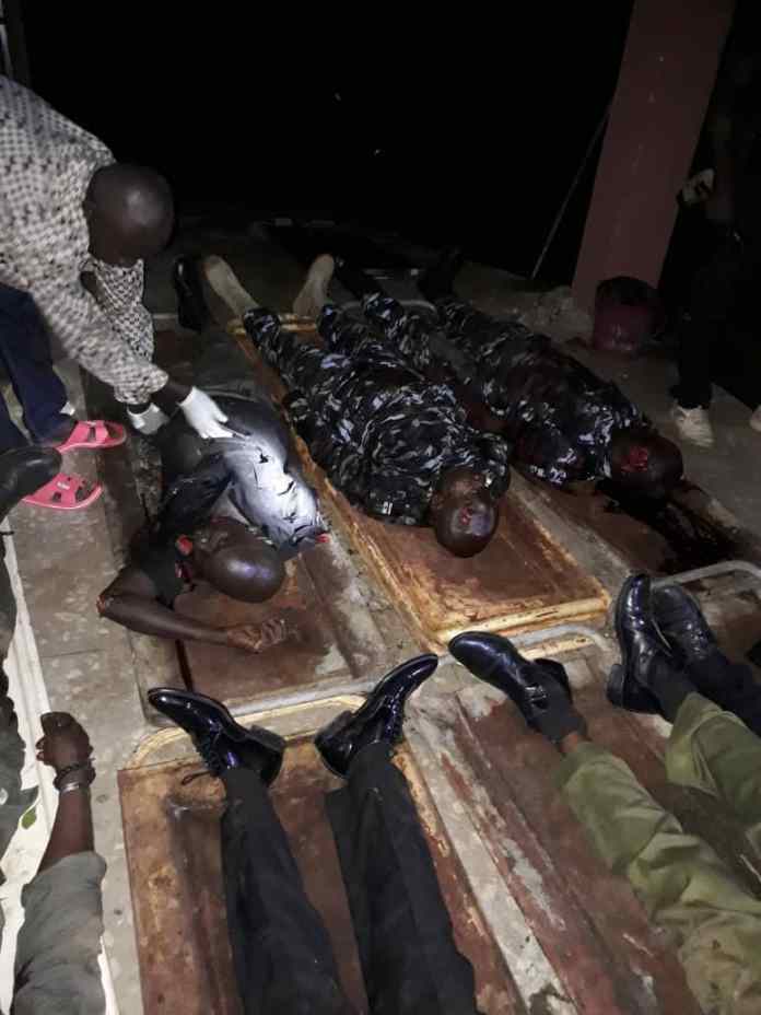 The bodies of the slain policemen at the hospital on Monday night. 02/07/2018