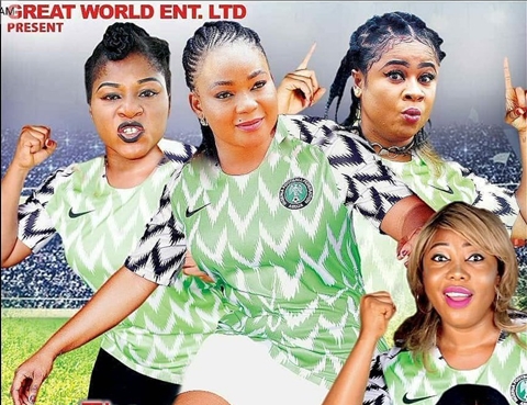 The movie poster saw popular actress, Racheal Okonkwo a.k.a  Nkoli Nwa Nsukka, the curvilicious Destiny Etiko and other actress wearing the Super Eagle's stylish jerseys.