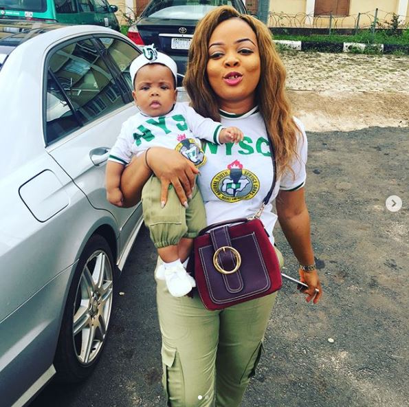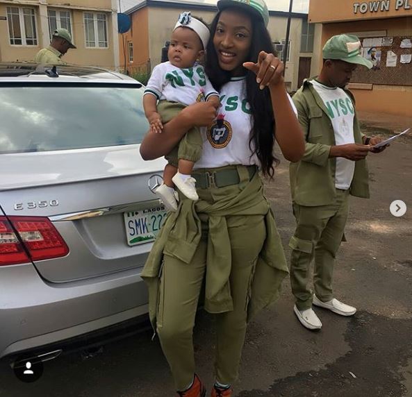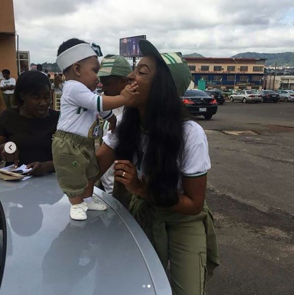 She dressed her toddler in the NYSC crested vest, the khaki trouser and white sneakers which looked for befitting. This attracted the attention of her friends at the parade ground as they hustled to take pictures with the friendly Chizaram.