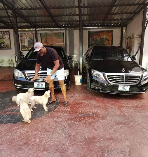 In these new set if photo he shared online, Melaye is seen posing by his cars and in front of his house.