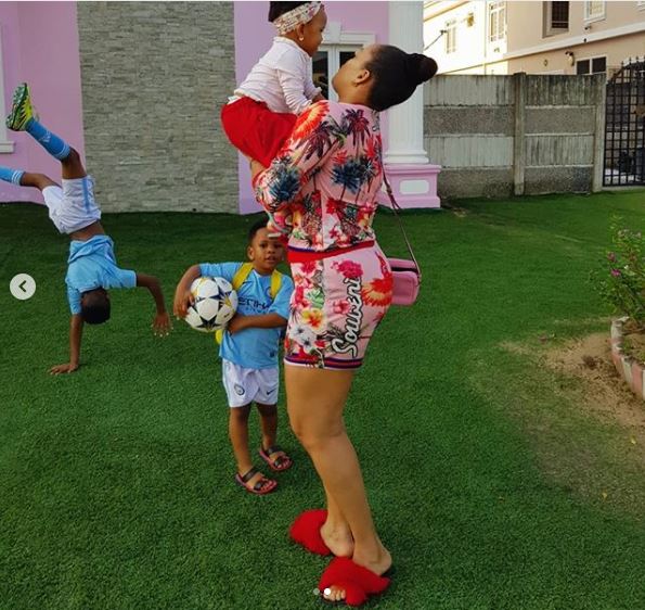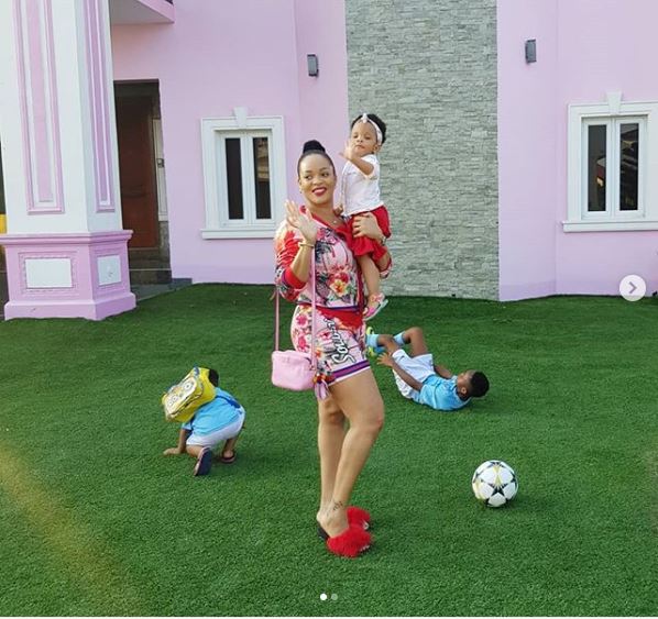 The adorable family were pictured on the lawn of their Lagos mansion.