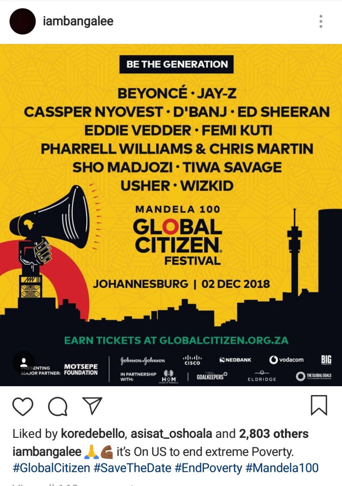 In his new post, D’banj has hinted that he might be performing after all at the Global Citizen Festival coming up later in the year. He shared the poster for the event with the caption: “It is on us to end poverty”.