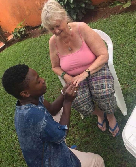 A young man is being trailed with mixed reactions and criticisms after photos showing him proposing to his much older white Oyinbo lover surfaced online.