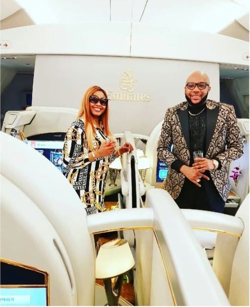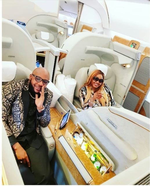 Lagos socialite, E-money was pictured flying from Nigeria to Asia in the utmost comfort of the business class section of an airline.