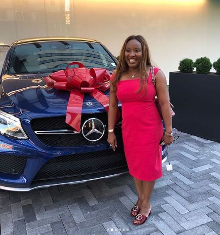 Sylvia Cole, the wife of Nigerian billionaire, Tonye Cole is a happy woman after her husband spoilt her with a brand new car.