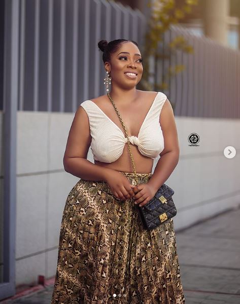 Curvy Ghanaian actress, Moesha Boduong steps out in braless cleveage baring outfit.
