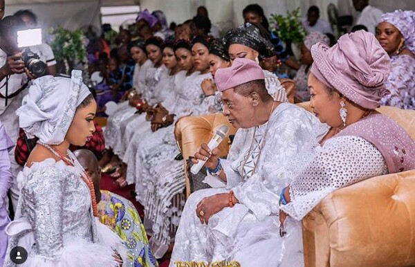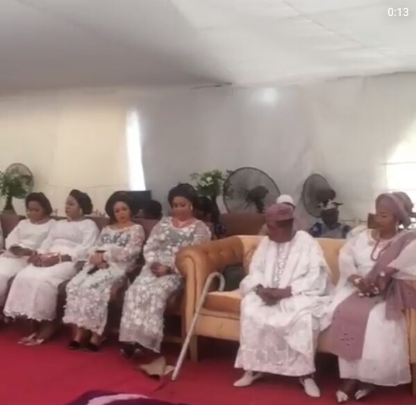 Oba Lamidi Adeyemi was pictured at the wedding which took place over the weekend, with all his wives with him.