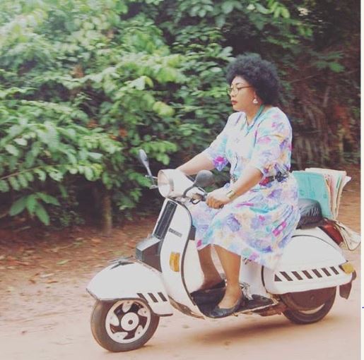 Veteran Nigeria actress, Eucharia Anunobi, has been spotted on a movie set, rocking the 'old school' hairstyle and clothing.
