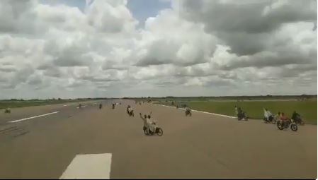A video has emerged, showing the Sokoto Airport runway being overrun by alleged supporters of an unnamed politician who rode motorcycles in solidarity.