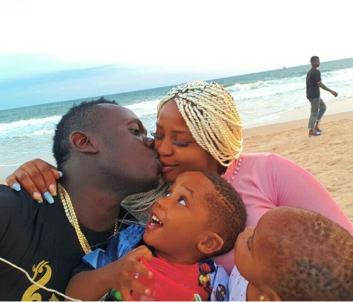 Port Harcourt First Son and rave of moment who has been getting a lot of music collaboration, has been seen at the beach kissing his wife as their children watch.