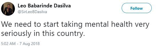 "We need to start taking mental health very seriously in this country."
