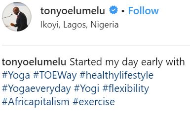 The Chairman of Heirs Holdings, posted a rather rare photo of himself (seen below) doing yoga in the morning just before going out and his many fans have found it very interesting.