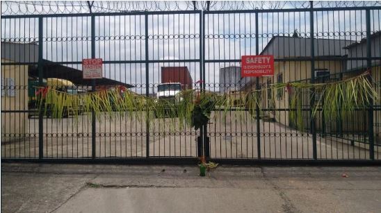 The ‘juju’, made of yellow palm fronds and ‘Ekpe’ leaves, was hung at the entrance of the company by unknown persons said to be contesting ownership of the land.