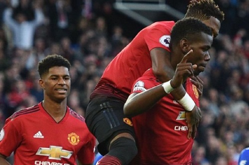 Paul Pogba fired Manchester United into a third-minute lead against Leicester from the penalty spot