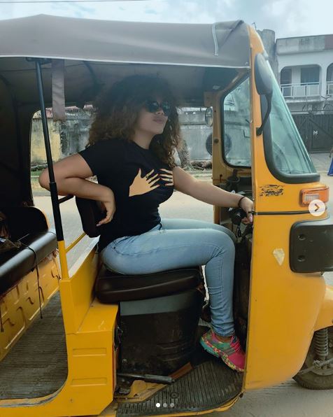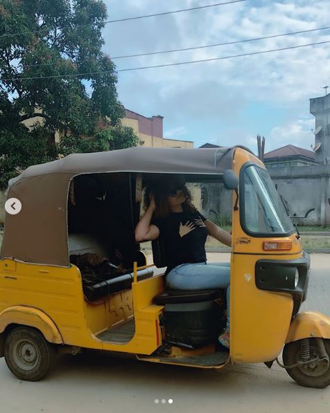 Nadia Buari today teased her fans with pictures of herself in a commercial tricycle as she was positioned at the driver's seat.