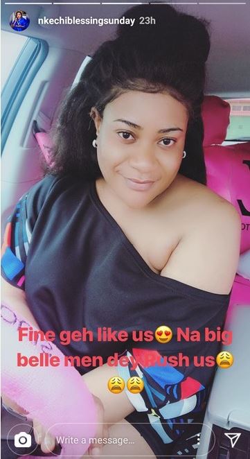"Fine geh like us, Na big belle men dey rush us" she said. This technically confirms the popular rumours that most Nollywood actresses are being bankrolled by Sugar Daddies.