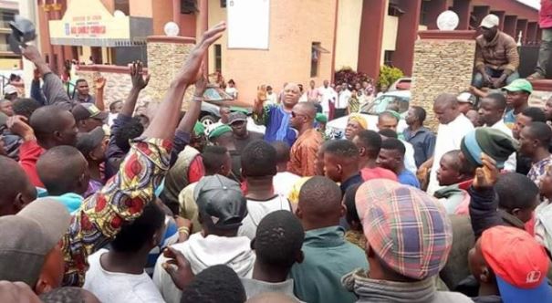 The church however received unusual visitors as hundreds of Okada riders and other artisans stormed the premises, chanting "Imole, Imole"