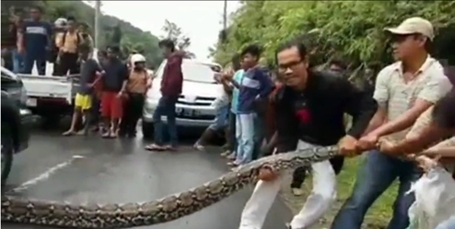 The incident caused traffic delays, according to the filmer. Residents felt sorry for the snake and came up with a plan to set it free, the filmer said. He added that it was handed over to snake conservationists after it was successfully freed.