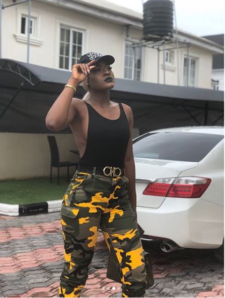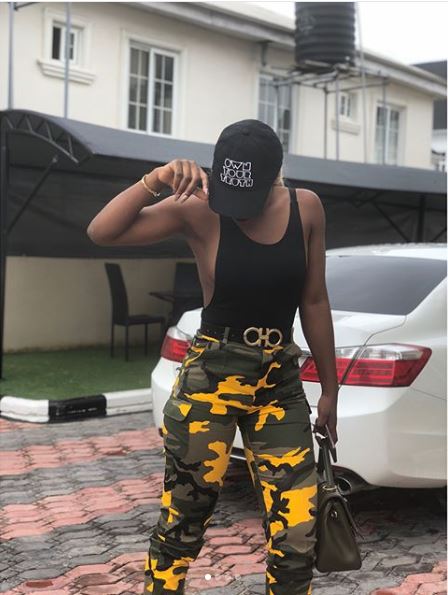Wearing a fez cap, spag and body-hugging camouflage trousers, she kept her fans commenting endlessly about how good she looks.