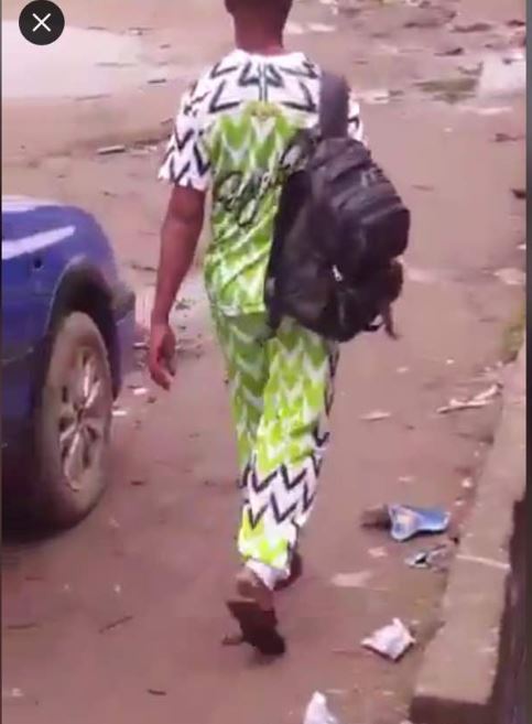 A Nigerian man was found wearing the Nigerian jersey as up and down in the streets of Lagos. His appearance left everyone in awe.