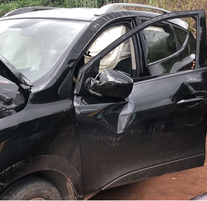 U.S returnee, Antoinette Munirat Lecky was recently involved in a road accident which slightly dented a vehicle that conveyed her.