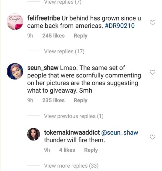 Controverisal model Toke Makinwa showed off her back view in a recent photo.