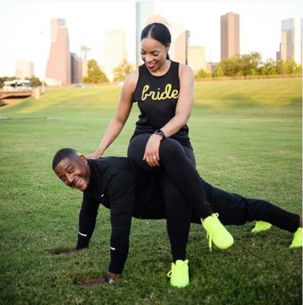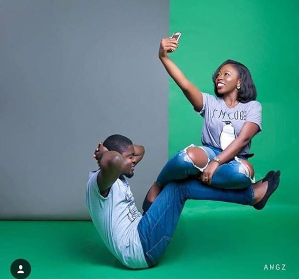 Lady Sits On Top Of Her Fiance As He Does Press-Up In Pre-Wedding Photo