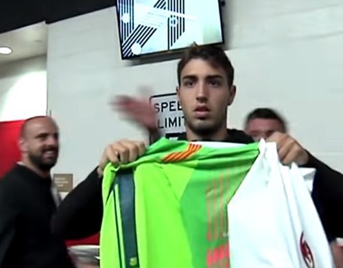 Valente Silva scored in injury time winner in the International Champions Cup tournament and after the full-time whistle, Bellodi clearly wanted to remember the result by picking up a Barca shirt.