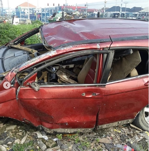 He posted photos from the scene of the crash and wrote: "My friend @djinee was involved in a ghastly accident Monday morning around 1am somewhere in Lekki. It's a miracle he survived!
