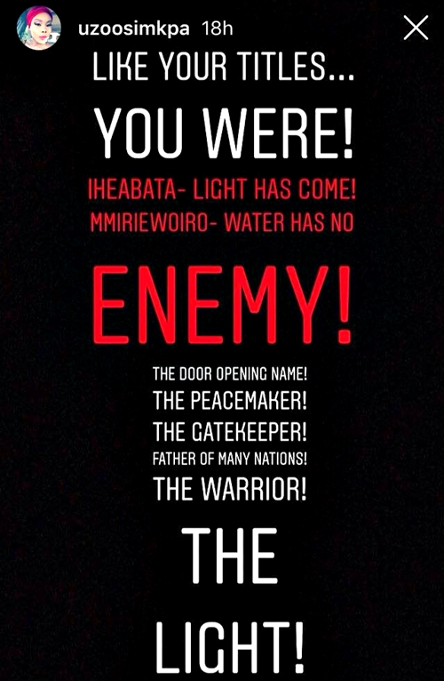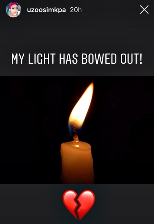 Popular Nigerian actress, Uzo Simkpa, is currently in a state of mourning after revealing to her fans that she has lost her father to the cold hands of death.
