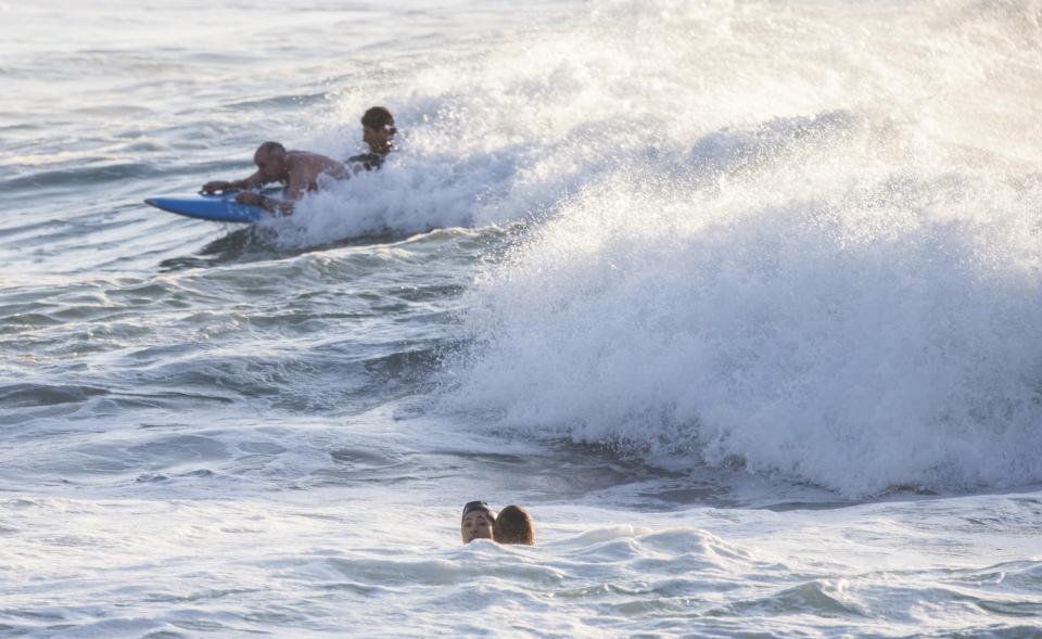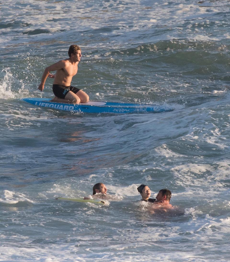 Lifeguard Anthony Carroll pulled the man from the water before heading to the flailing woman along with his colleagues to see if he could help.