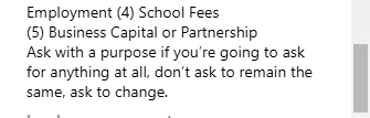 Please ask for (1)Land (2) 500k Loan (3) Employment (4) School Fees (5) Business Capital or Partnership