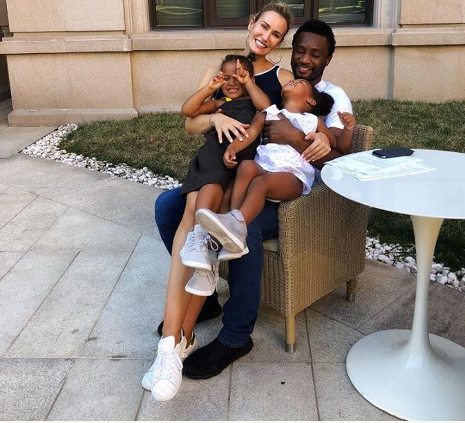 Super Eagles midfielder and captain, Mikel Obi is all smiles with his wife, Olga and their twin daughters, Mia and Eva as they enjoy family time in a new photo he just shared via Instagram and they look so adorable together.