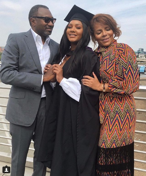 The latest graduate took to her Instagram page @jtofashion to share a photo from her graduation where her father and mother were in attendance.