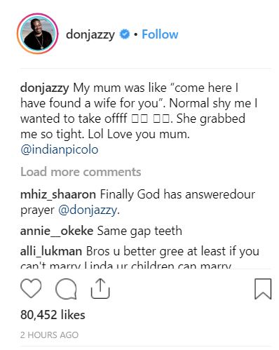 Mavin Records boss, Don Jazzy has revealed that his mother has finally found him a wife.