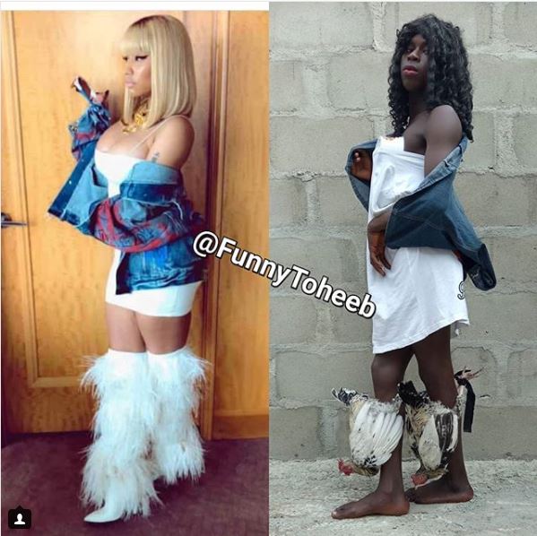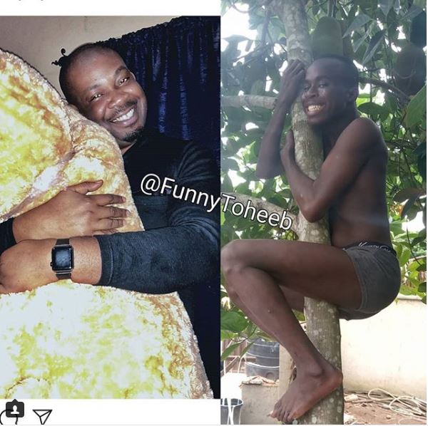 Funny Toheeb, a comic figure on social media appears obsessed with celebrities as he has been recreating their photos in a hilarious fashion.