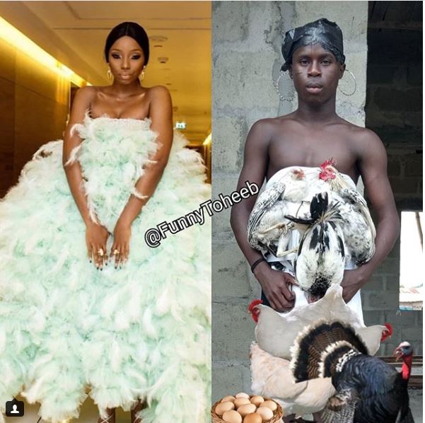 "Incase you are looking for your chicken or Turkey, am not around, come back in the Night is not me oo but @bammybestowed that used it in her outfit, people can testify through this pishaw," FunnyToheeb wrote.