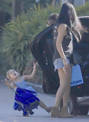 The toddler was walking hand in hand with her mom as they walked past a parked car in Malibu on Sunday, when a car doors flung open and hit poor Penelope in the face.